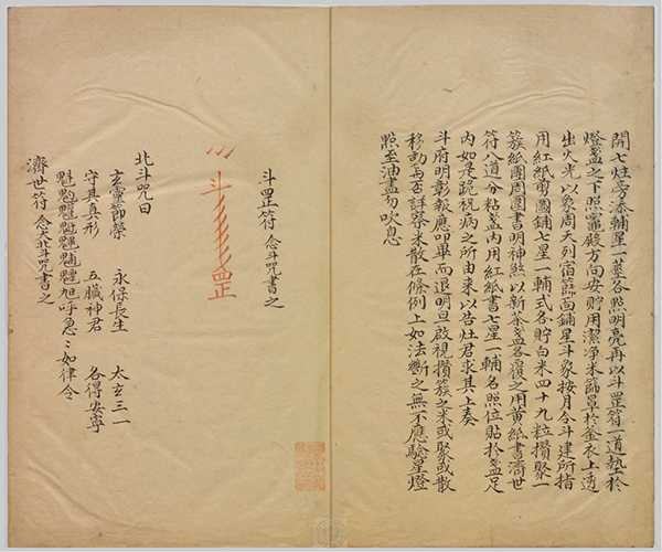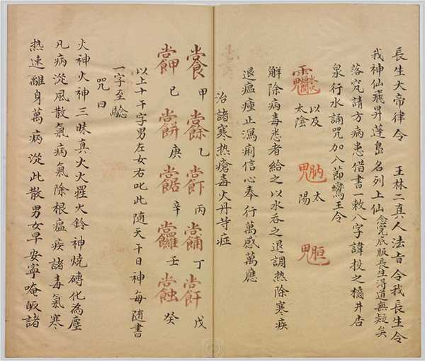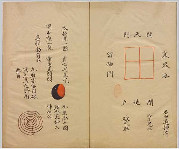 符咒,又称为符箓,道教素有“三山符箓”之说。符咒是道门宗派修炼中重要的组成部分,道教的法器中,重要莫过于符咒。道教在长期传习符箓术的过程中,创造了纷繁的符箓道法,造作了众多的符书。《后汉书·方术传》载:“河南有麹圣卿,善为丹书符,劾厌杀鬼神而使命之。”又记:“费长房向卖药翁(被称为壶公)学道,卖药翁为作一符,曰:‘以此主地上鬼神’……遂能医疗众病,鞭笞百鬼,及驱使社公”、“后失其符,为众鬼所杀”。