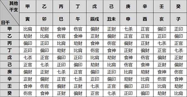 干支十神对照表