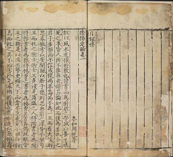 此《阴阳定论》由明代泰和周视著。全书共三卷,主要内容有风水天象、阴阳五行、地理点穴。包含:古今格言、九星之谬、宗庙之谬、天河转运之要、积阴德、辨阴阳、正五行、杖法、地理集结点穴诸法、风水活法、整地法等等。