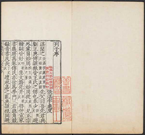 版别:《六子全书》明嘉靖时期顾氏世德堂刊本。世德堂《六子全书》,为嘉靖间一部影宋名刻。顾春辑,全套共六十卷,包括《道德经》二卷,《南华真经》十卷、《冲虚至德真经》八卷,《荀子》二十卷、《新纂门目五臣音注扬子法言》十卷,《中说》十卷。