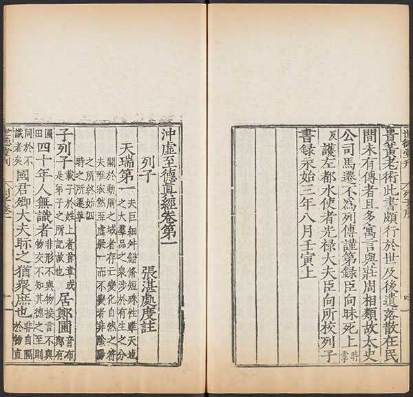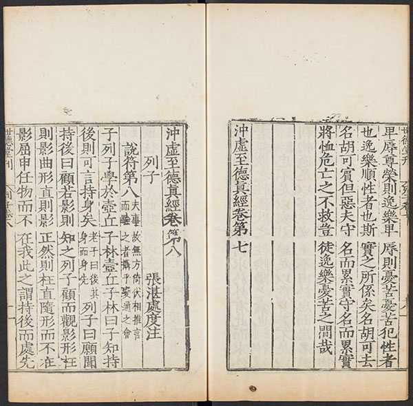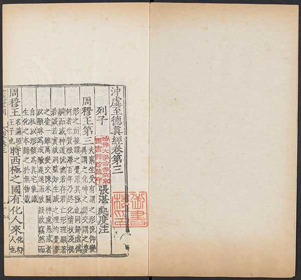 此《冲虚至德真经》即《列子》,是道家重要典籍,相传由战国时期郑人列御寇(列子是世人对他的尊称)所著,东晋学者张湛注。全书共八篇:天瑞、黄帝、周穆王、仲尼、汤问、力命、杨朱、说符。每一篇均由多个寓言故事组成,寓道于事。此书于2020年10月30日,入选第六批《国家珍贵古籍名录》。