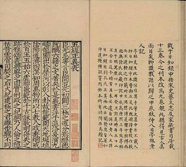 《周易注疏》为清代陈鳝据明代孙景芳所藏补刻十二卷(缺第一卷)及钱求赤写本第一卷再补刻成十三卷,陈氏又加入周易正义前唐长孙无忌五经正义表、孔颖达周易正义序和八论为卷首,所以准确说来此为宋刻宋元明递修本。陈鳣认为此书“即《九经沿革例》中所称绍兴初监本也。每叶楮背有‘習說書院’长方印,知出宋时印本,惜首卷失去。仲鱼于周漪塘家借钱本补全。首有《进五经正义表》,亦各本所无。卢抱经(文弨)据以载入《群书拾补》中。惟后无《略例》、《释文》,今以明翻八行本补之。”卷中有“陈鳣所藏”朱记。