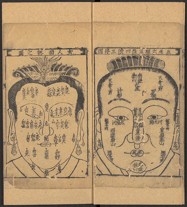 卷四:新刊风鉴相法总括人相编。为相骨、肉、头、面、面上纹理、额、眉、耳、目、印堂、山根、鼻、人中、口、唇、齿、食。