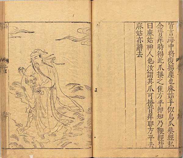 此《仙佛奇踪》又名《月旦堂仙佛奇踪合刻》,约成书于万历三十年(1602),全书共四册,含消摇墟、寂光镜各三卷,长生诠、无生诀各一卷。其中《消摇墟》绘录道家诸仙六十三位,《寂光镜》绘录佛家列尊六十一位,每图后附文字简介。书中插图内容多为里巷传说,世俗之谈,反映了明人奉道近佛的风气,故《四库全书总目》视之为“荒怪之谈”,而附于小说家类之中。