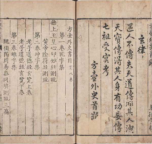 此《方壶外史》是明代道士(内丹派东派创始人)陆西星所辑释的内丹丛书。全书共八卷,收书十五种,始于:无上玉皇心印妙经测疏、阴符经测疏。终于:金丹大旨图、七破论。其内容包括丹经注释、阐述内丹理论和方法。