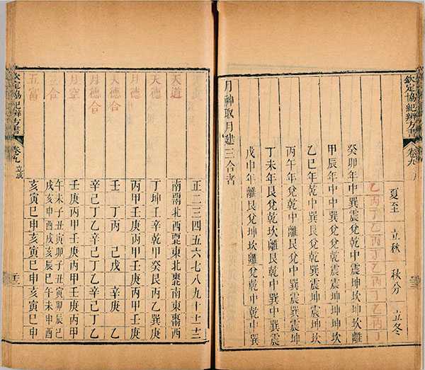 《钦定协纪辨方书》是一部集选择之大成的著作,全书共计三十六卷。第一、二卷为本原,主要介绍河图、洛书、八卦、天干地支、五行、纳音、纳甲等有关选择术的基本原理。第三卷至第八卷为义例,主要介绍各种神煞的起例即运行规律。第九卷为立成,即将义例所叙各神煞的运行规律列成表格,使读者一目了然,便于查阅。第十卷为宜忌,分别注明各神煞所值日宜做的事和忌做的事。第十一卷为用事,以行事为线索,分别叙述某事宜于哪些神煞值日做,某事不宜于哪些神煞值日做。第十二、十三卷为公规,叙述节气、昼夜日刻、天象、各种祭典。第十四卷至第十九卷为年表,按六十甲子依次叙述神煞的转换。第二十卷至第三十一卷为月表,以月为单位,分别列出十二个月中每月每日的吉神与凶神以及相应的行事宜忌。第三十二卷为日表,以日为单位,分别叙述六十甲子日的时辰定局以及贵登天门时定局和四大吉时定局。第三十三卷、三十四卷为利用,论述有关选择应遵循的一些主要原则,如怎样克制凶煞等。第三十五卷为附录,第三十六卷为辨讹。