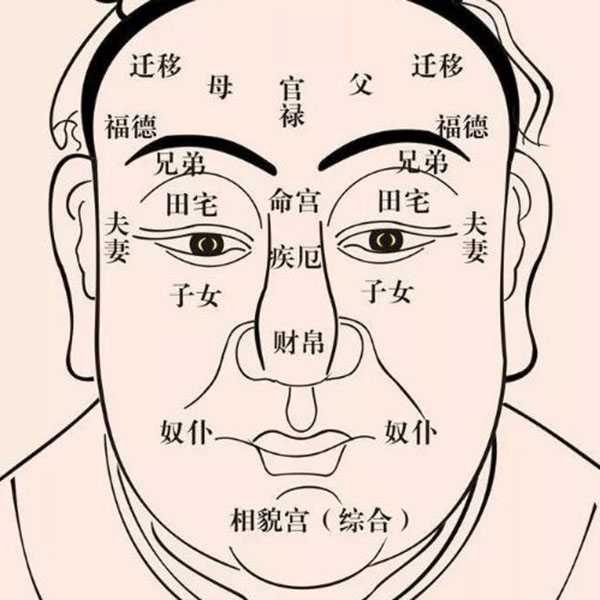 面相学中将人的面部分为十二个部分,即所谓的面相十二宫,并以不同的宫位来论断命运的吉凶成败。面相十二宫中,又以父母宫代表父母,其影响着一个人与父母的关系以及家庭背景等。