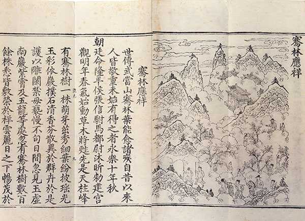 榔梅呈瑞:在武当山过去有一种很独特的植物叫榔梅果,按照《徐霞客游记》里面的记载,它是桃核杏实,上面有一些花纹,从外观上看,有点儿像杏子,比杏子还要小,金橘那般大小。据说是静乐国太子在武当山修炼的时候,拿了一个梅枝插在榔树上说,如果我修道成功以后,这个梅枝就会开花结果,就会结出榔梅来。永乐十一年,武当山五龙宫的榔梅树开花结果,而且枝叶茂盛,果实很多。这件事被称为“榔梅呈瑞”,作为一个独特的显灵故事,送到了南京城,据说永乐皇帝很高兴,文武百官,每人送两颗榔梅果。