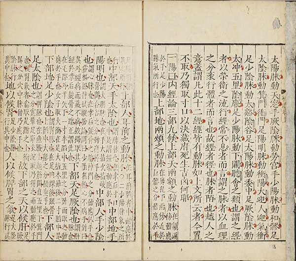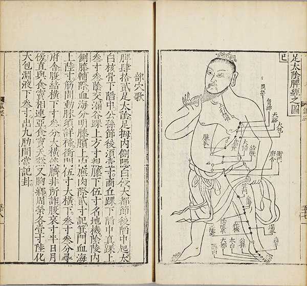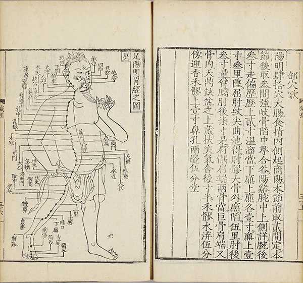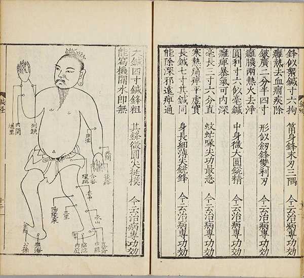 此《医学统宗》是由明代何柬编辑的一套综合性医学丛书。全部共五册,包含:难经本义补遗(二卷)、治病针法、滑氏诊家枢要、医书大略统体、滑氏伯仁卮言、附杂录、试论。我国古代解剖学在宋代经历了两次发展高峰后,继续缓慢向前发展。明代军医何柬通过实体解剖,观察了膈膜、心脏、肝脏、胆囊、膀胱、咽喉等人体器官,并将其发现记录于《医学统宗》中。何氏的发现超越了前人,也为晚于其300年的王清任所不及。此为京都大学附属图书馆藏明隆庆三年刊本,国内罕见。