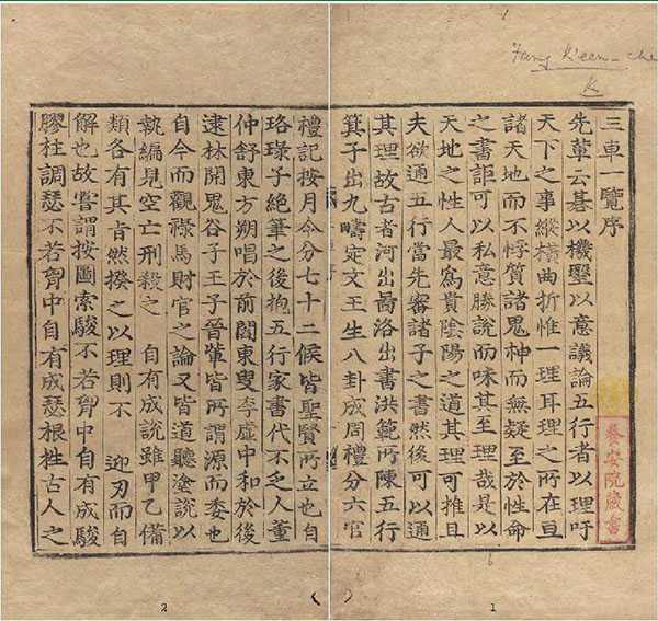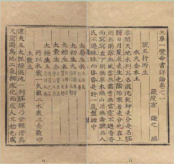 序拔信息:南宋景定二年辛酉(1261年)序。书内题《新刊严陵先生三车一览》、《严陵方氏三车一览》,序中又名《三车一览五行纪源》。