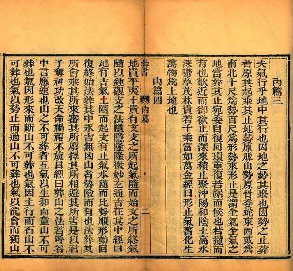 相传郭璞得河东郭公授《青囊中书》九卷,而通天文五行卜筮之术。《宋志》记载有郭璞《葬书》一卷,后术家尊其说者改名《葬经》。《葬书》存其八篇,至纯者为内篇,精粗纯驳相半者为外篇,粗驳当去而姑存者为杂篇。书中词意简质,如乘生气一言,其义颇精。又所云葬者原其起,乘其止,乘风则散,界水则止诸条,亦多明白简当。王褘《青岩丛录》曰:“择地以葬,其术本于晋郭璞。所著《葬书》二十篇,多后人增以谬妄之说。蔡元定尝去其十二而存其八。后世之为其术者分为二宗,一曰宗庙之法。始于闽中,其源甚远。至宋王权乃大行。其为说主于星卦,阳山阳向,阴山阴向,不相乖错,纯取八卦五星以定生克之理。其学浙中传之,而用之者甚鲜。一曰江西之法。肇于赣人杨筠松,曾文迪及赖大有、谢子逸辈,尤精其学。其为说主于形势,原其所起,即其所止,以定位向,专指龙穴砂水之相配,而他拘泥在所不论。今大江以南无不遵之者。二宗之说虽不相同,然皆本于郭氏者也云云”。