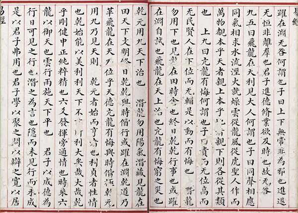 《易经》亦称《周易》,简称《易》。《易经》是中国最古老的文献之一,并被儒家尊为“五经”之首;《易》事实上是集合了古代的《连山》、《归藏》和《周易》,但《连山》和《归藏》已经失传。《易经》以一套符号系统来描述状态的变易,表现了中国古典文化的哲学和宇宙观。它的中心思想,是以阴阳两种元素的对立统一去描述世间万物的变化。易有不易、变易、简易三种含义,内容包括经、传两部分,六十四卦三百八十四爻,附卦辞、爻辞为经;上彖、下彖、上象、下象、上系、下系、文言、说卦、序卦、杂卦称十翼为传。