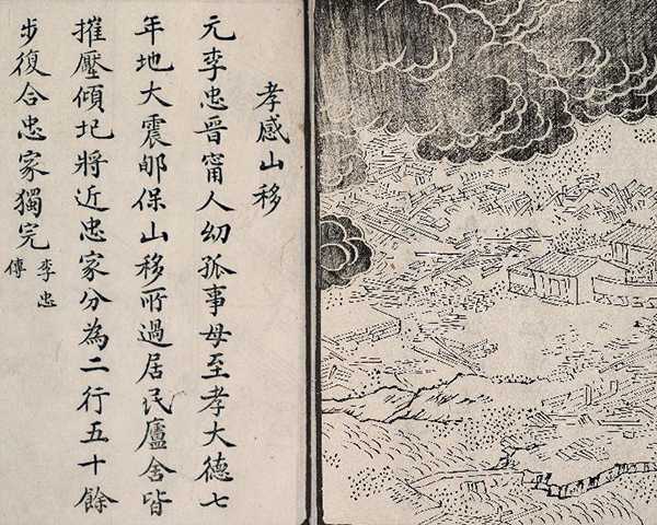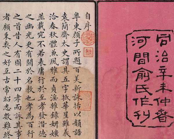 我国历朝历代向来以儒家孝道治天下,前有二十四孝图传世。清代咸丰间学者俞葆真观《百美新咏》,忿于“贞淫杂录,妍媸并载”,又感于“有虞以来五千有余岁矣,积世愈久,成德愈多,其中湮灭不传者何可胜慨”,故甄选孝德事迹百人百例,上自虞舜,下迄前明,间圣帝明王、贤士大夫、妇人孺子,为之编撰成诗文。俞葆真未及配图而病逝,清同治九年,其兄俞泰主持刊刻,延请何云梯绘制书中百幅插图,刻印付诸于世,是为《百孝图》。此书一图一文,文字均为写刻,版图数量多,刻绘人物形态毕现,细腻传神,绘刻俊秀,为所见孝书中绘图最多者,为清代劝孝类书版画精品佳作,为一时之胜举。