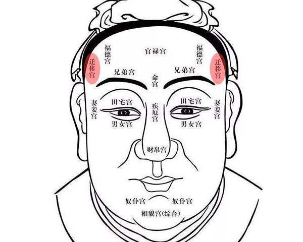 面相学中将人的面部分为十二个部分,即所谓的面相十二宫,并以不同的宫位来论断命运的吉凶成败。面相十二宫中,迁移宫代表着人搬迁、出行和晋升方面的吉凶。