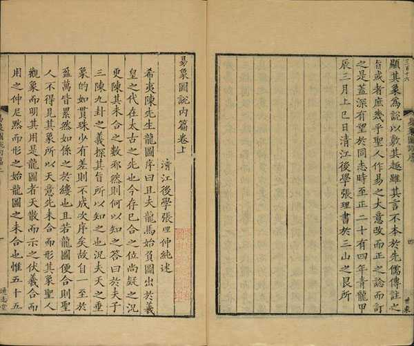 此《易象图说》为元代张理撰,原文由内篇三卷,外篇三卷,共二篇六卷及序言组成。本书为象数派经典著作,包括原书所有图象二十四幅,图后均附文字释意。此书所载图像,许多是从秦始皇焚书时便已湮没,原撰者历尽艰辛,从“方外”影附而得,使之重归中土,其珍贵可想而知。北宋时期,《易经》学说逐渐融合道教、佛教之说,故由象数学中衍出专主图书一派,首创者为宋初道士陈持,其后遂流变为以邵雍为代表的《先天图》学,以周敦颐为代表的《太极图》学,以刘牧为代表的《河图》、《洛书》学三家。