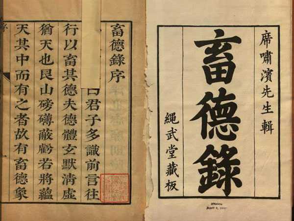 此《畜德录》为清朝席启图撰,取《大畜象传》君子多识前言往行以畜其德之义,故以名书。是书集取周、秦以来迄于元、明嘉言善行,分为二十一类,亦间附批评。