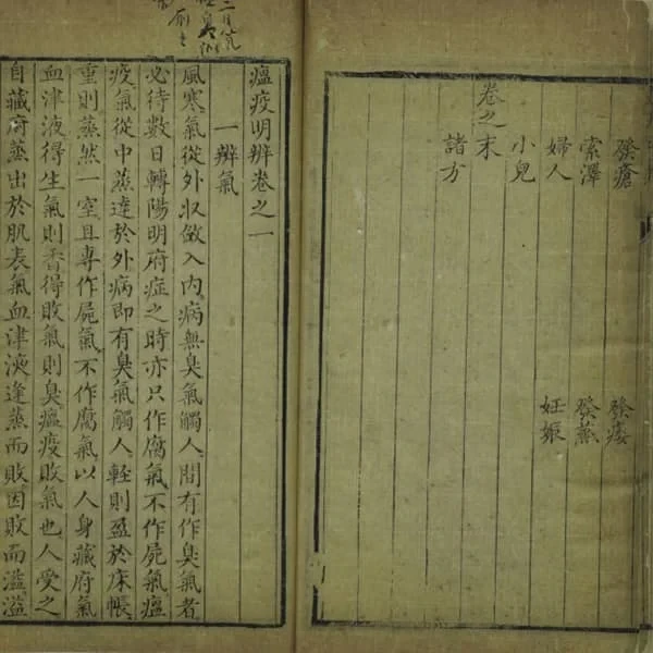 卷一:一辨气、二辨色、三辨舌、四辨神、五辨脉、辨时行疫疠与风寒异气、辨时行疫疠与风寒异受、辨传经、兼寒、兼风、兼暑、兼疟、兼痢、夹痰水、夹食、夹郁、夹血、夹脾虚、夹肾虚、夹亡血、夹疝、夹心胃痛、夹哮喘
