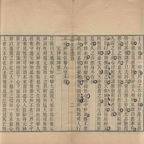 此《太乙金华宗旨》又名《吕祖太乙金华宗旨》《吕祖先天一气太乙金华宗旨》,为道家内丹学重要典籍,托名唐代吕洞宾所传,实际由明清时期扶乩乩坛整理编撰而成。全书共一卷十三章,以炼精化气为核心,主张通过回光功法(注想天心)实现性命双修,语言直白深入阐述了金丹大道的精髓与修证方法,摒弃了繁杂的隐语与铅汞、龙虎等名相,而是借助儒、佛经典来阐释其深奥义理。作者认为道家所追求的“自然”即“道”,它无形无相,仅以“一性”和“一元神”来诠释,强调“道”的自然本质,揭示性命之学的深奥,通过修行双眼可以感悟生命的奥秘,被后世誉为"内丹学的明珠"。