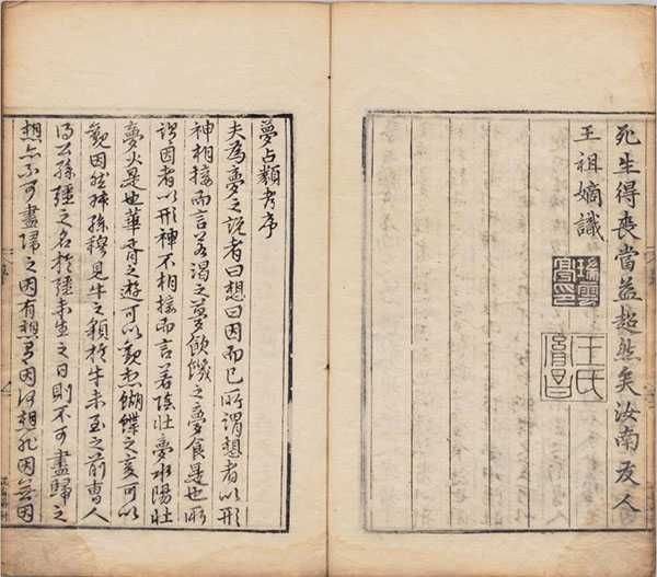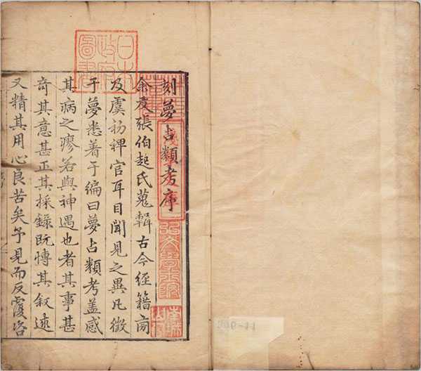 刻梦占类考序(王祖嫡撰)、梦占类考序(张凤翼撰)、凡例、目录