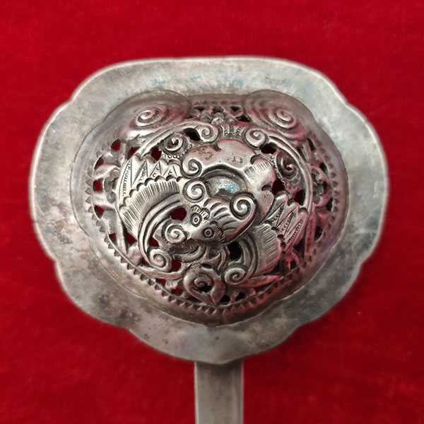 此蝙蝠银发簪为纯银手工精制而成,纯度高银色正,雕刻工艺细致,纹饰清晰传神,包浆自然厚重。簪头雕刻蝙蝠纹饰,寓意祥瑞如意,具有祛邪避灾、祈福纳吉的风水理气功效。