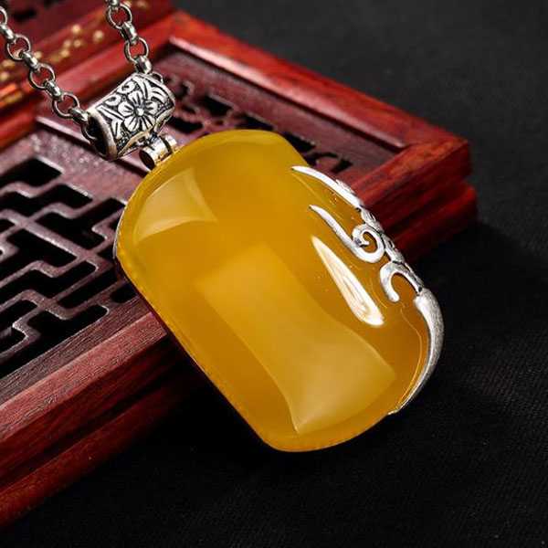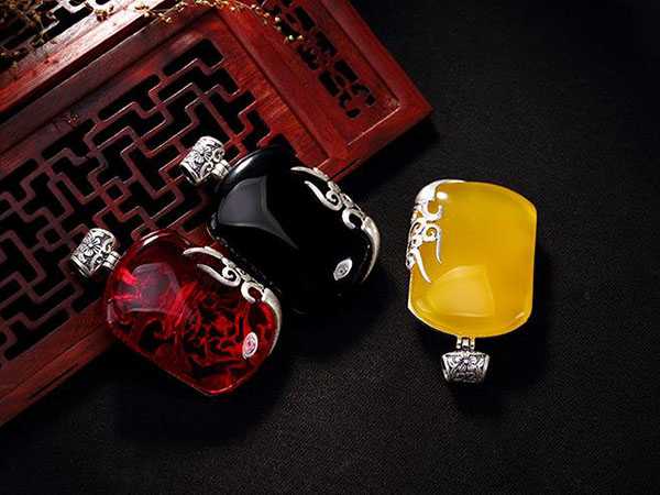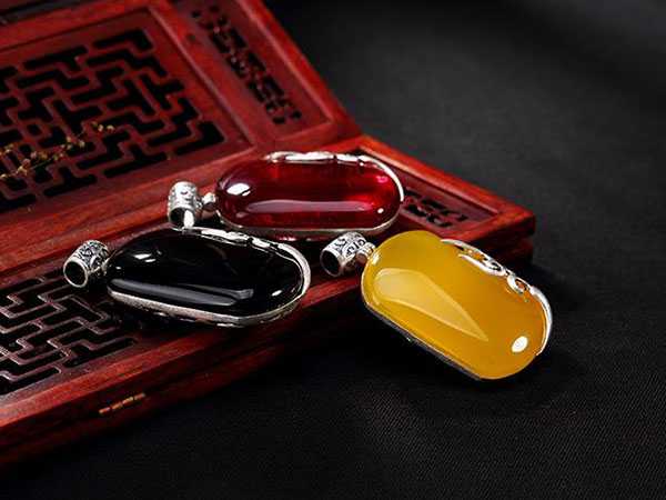 高54.5mm,宽32.5mm,厚14.5mm。 石榴石款重约33.5g。 黑玉髓款重约32.5g。 黄玉髓款重约29.5g。