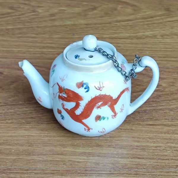 此粉彩龙凤呈祥执壶工艺精美,形制规整,釉质温润,发色纯正,包浆均匀自然,画工精美流畅,壶口略有缺损。壶身绘制龙凤呈祥图案,寓意祥瑞如意、吉庆平安、百年好合,具有祛邪避灾、祈福纳吉的风水理气功效。