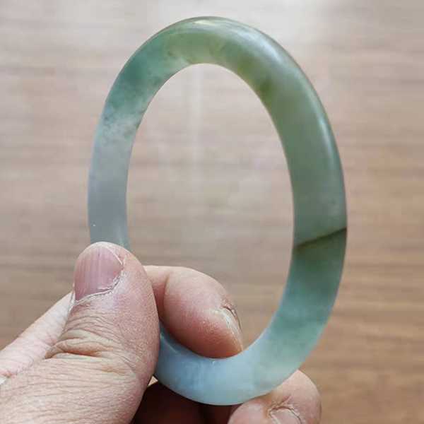 此翡翠美人镯精选缅玉翡翠精制而成,质地坚硬,颗粒细腻,润泽通透,冰种飘青花,色泽淡雅,条形精致秀气,造型古朴优美,除有一裂外保存较好。翡翠五行属土,对于八字喜用为土者,具有提升气运、护佑平安和改善五行气势的风水理气功效。