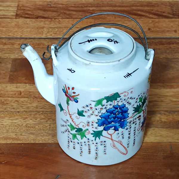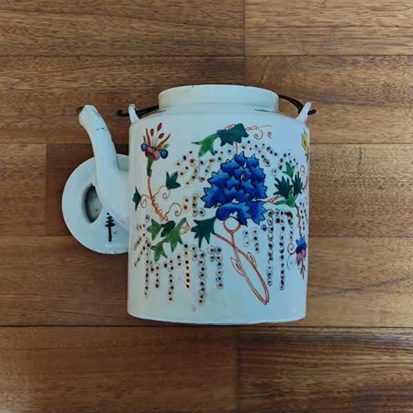 此粉彩葡萄纹提梁壶工艺精美,形制规整,釉质温润,发色纯正,包浆自然,除壶嘴稍有破损外,保存大体完整。壶身绘有葡萄图案,画工精细雅致,色泽鲜艳浓郁,寓意世代绵延、多子多福、家道昌盛。