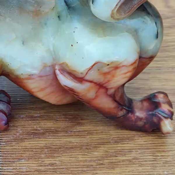 此翡翠貔貅摆件选用缅玉翡翠,纯手工雕刻而成,质地坚硬,工艺细腻,底部满红,色泽纯正饱和,对比强烈,造型古朴优美,包浆厚重自然。其造型为貔貅,寓意招财进宝,辟邪化煞,祥瑞如意,祈福纳吉。翡翠五行属土,对于八字喜用为土者,具有提升气运、护佑平安和改善五行气势的作用。