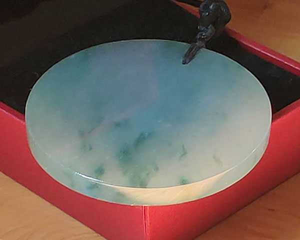 中国道家传统文化崇尚无为,指凡事要“顺天之时,随地之性,因人之心”。《妙真经》曰:“欲求无为,先当避害。何者?远嫌疑、远小人、远苟得、远行止;慎口食、慎舌利、慎处闹、慎力斗。常思过失,改而从善。”翡翠无事牌看似没有纹饰,简单坦荡,却又似包含万物,有容乃大,颇具哲理,意境深远。