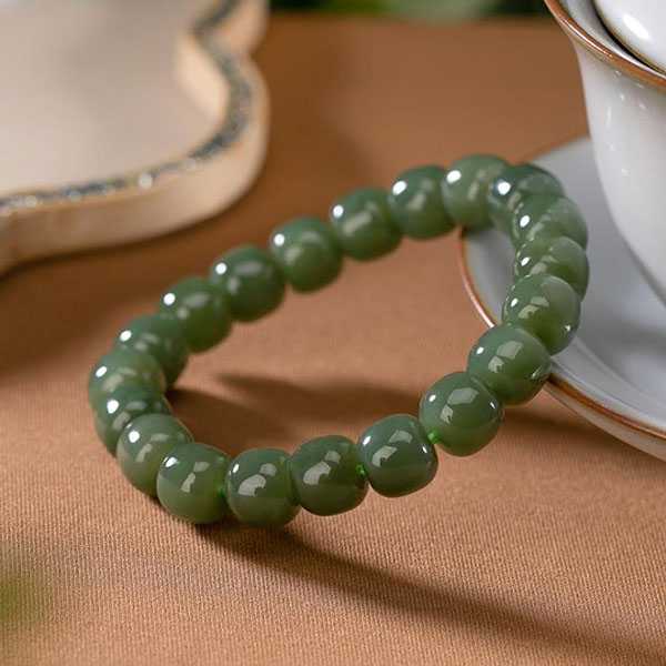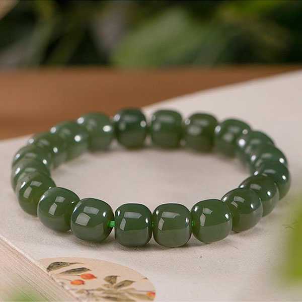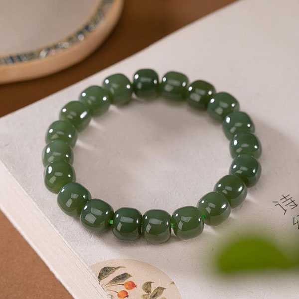 此和田青玉手链选用天然和田青玉,纯手工精制而成,质地自然纯净、光洁细腻,设计古朴。青玉五行属土,对八字喜土者具有提升气运、护佑平安和改善五行气势的风水理气作用。