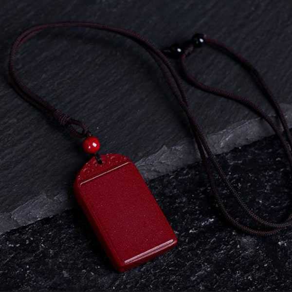 此化太岁朱砂无事牌吊坠精选原矿朱砂精制而成,造型古朴优美。无事牌又叫平安无事牌,表面“无饰”与“无事”谐音,寓意驱邪免灾、平安健康、无事烦扰,适合命犯太岁者佩戴。
