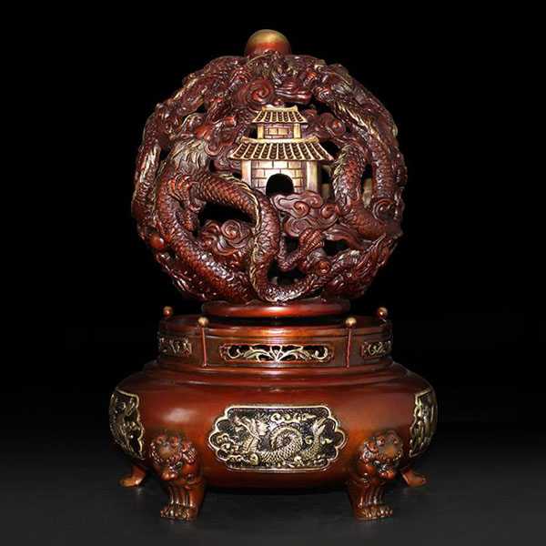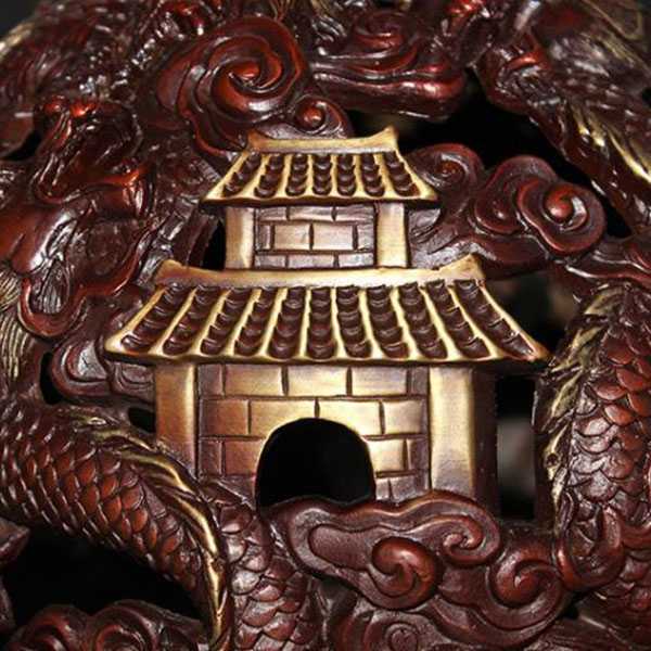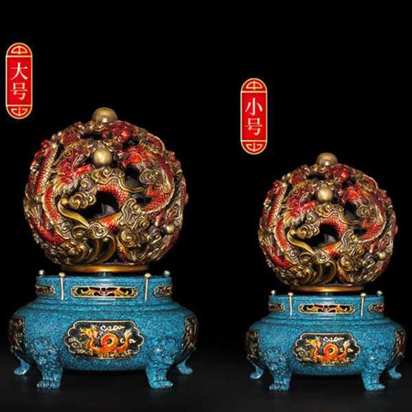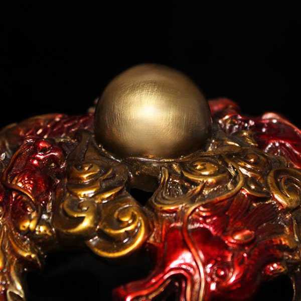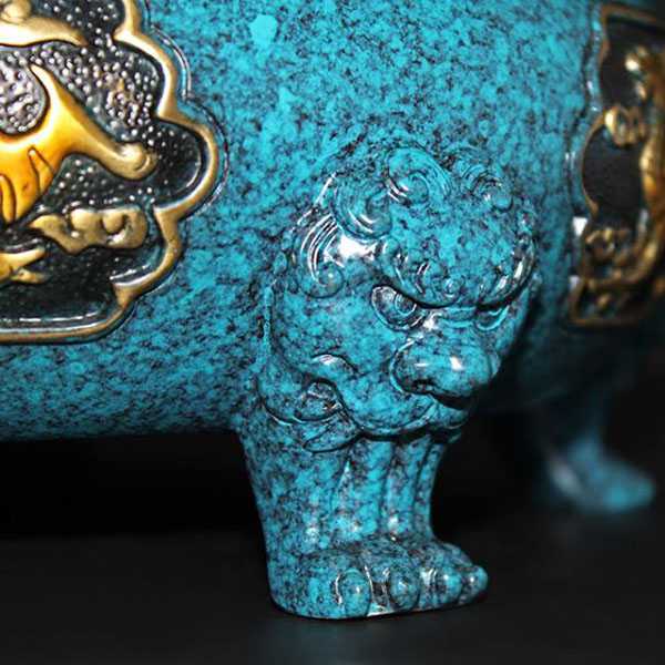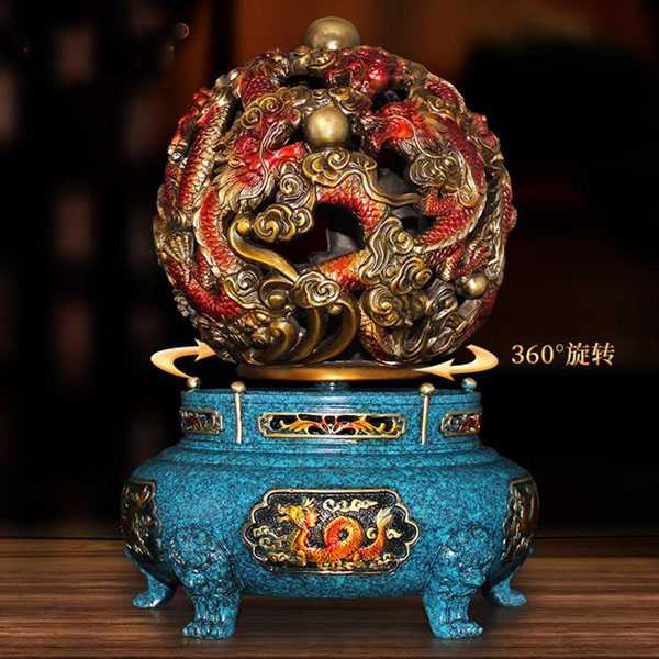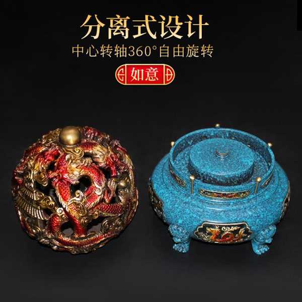 此九转乾坤青龙鼎选用62国标新铜,纯手工精制而成,威武大气,细节考究,色泽亮丽,高温烧色不褪色,手感润泽而有层次感。鼎身与底座采用分离式设计,可360度自由旋转。鼎身造型为浮雕九龙戏珠,底座饰以四神兽图案,寓意家和文昌、事业兴旺、财运亨通、飞黄腾达。其设计巧妙运用易经原理,具有辟邪化煞和镇宅开运的风水理气功效。