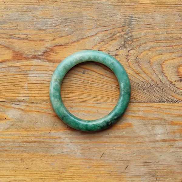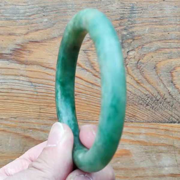 此老坑满绿圆条翡翠手镯精选老坑缅玉翡翠精制而成,质地坚硬,颗粒细腻,表面光泽,色泽满绿,造型古朴优美,包浆厚重自然。翡翠五行属土,对于八字喜用为土者,具有提升气运、护佑平安和改善五行气势的作用。