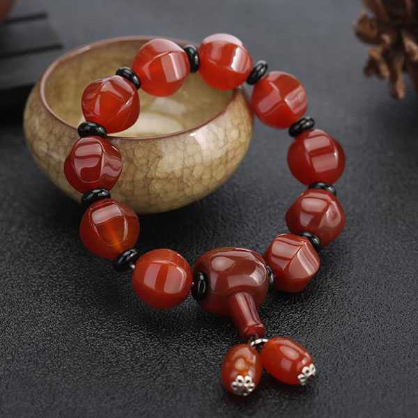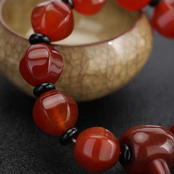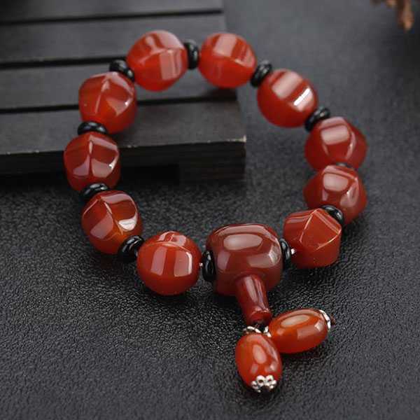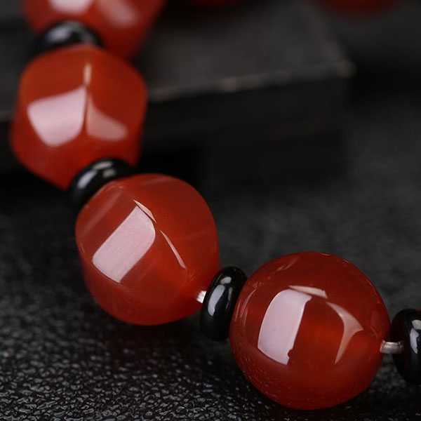 此南红切面灯笼串珠手链选用天然南红玛瑙,纯手工精制而成,质地自然纯净、光洁细腻,设计古朴。南红玛瑙五行属火,对八字喜火者具有提升气运、护佑平安和改善五行气势的风水理气作用。