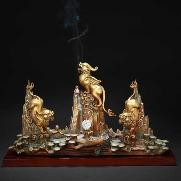 此全铜貔貅山水聚财阵摆件选用62国标新铜,纯手工精制而成,设计独特,手感细腻,高温烧色工艺不褪色。其造型为貔貅聚财法阵,兼具倒流香功能,寓意招财聚宝,财源广进,生意兴隆,具有催旺财运,镇慑邪崇之作用。