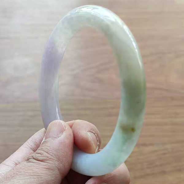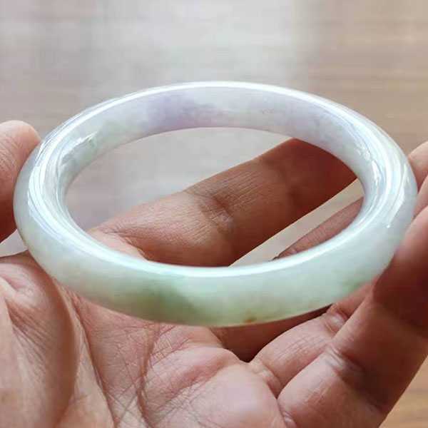 此青花翡翠手镯精选缅玉翡翠精制而成,质地坚硬,颗粒细腻,表面光泽,糯种带青花色,造型古朴优美。翡翠五行属土,对于八字喜用为土者,具有提升气运、护佑平安和改善五行气势的作用。