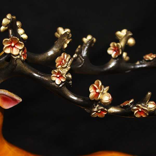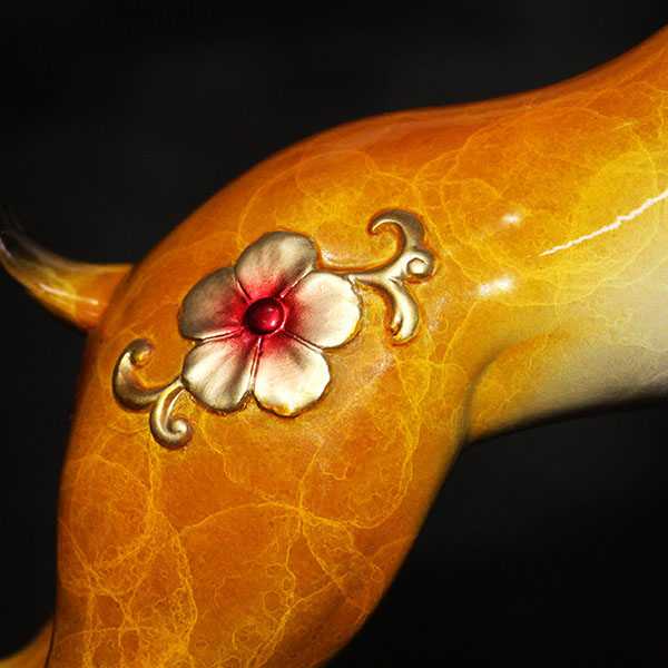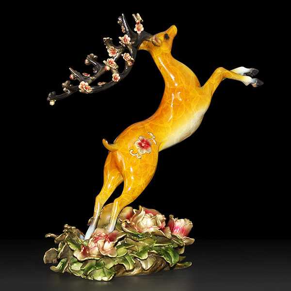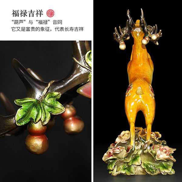 鹿,四肢细长,公鹿头生有枝角,具有美丽的外形和温顺的性格。鹿音同“禄”,故自古就成为人们祈求财富和地位的吉祥物。《汉书·蒯通传》云:“秦失其鹿,天下逐之”,《抱朴子》曰:“鹿寿千岁,满五百岁则其白”,在中国传统文化中,鹿被视为善灵之兽,是权力、健康、爱情和福寿等美好愿望的象征。