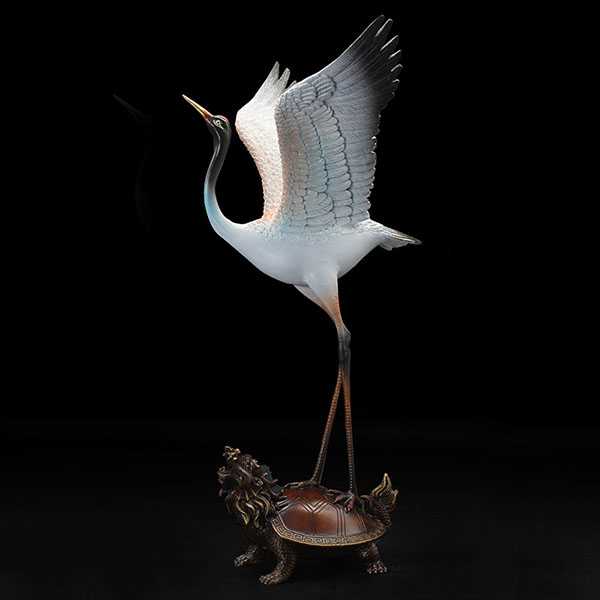 仙鹤是生活在沼泽或浅水地带的一种大型涉禽,其身姿优美,高雅大方,寓意富贵长寿、吉祥如意,是一种高贵的鸟类。《雀豹古今注》载:“鹤千年则变成苍,又两千岁则变黑,所谓玄鹤也”,在中国传统文化中,鹤被视为仙禽,仙风道骨,为羽族之长,位居“万鸟之上”,是仅次于凤凰的“一品鸟”,明清一品官吏的补服图案就是“仙鹤”。