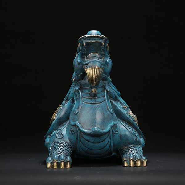 龙龟,也称霸下、赑屃,是一种瑞兽,相传为龙生九子之一,其形头尾似龙,身形似龟,好负重,长年累月地驮载着石碑。龙龟是权利地位和长寿吉祥的象征。龙龟既有龙的威武刚强,亦有龟的忍辱负重阴柔,故民间风水界,一向以来皆以龙龟为风水理气的圣品,其力量除了化解太岁、是非口舌及各种形煞外,也有镇宅平安、招财迎福之功效。 龙头朝向门户,可招财纳福,龟尾、龟背向外,以挡冲煞之气。