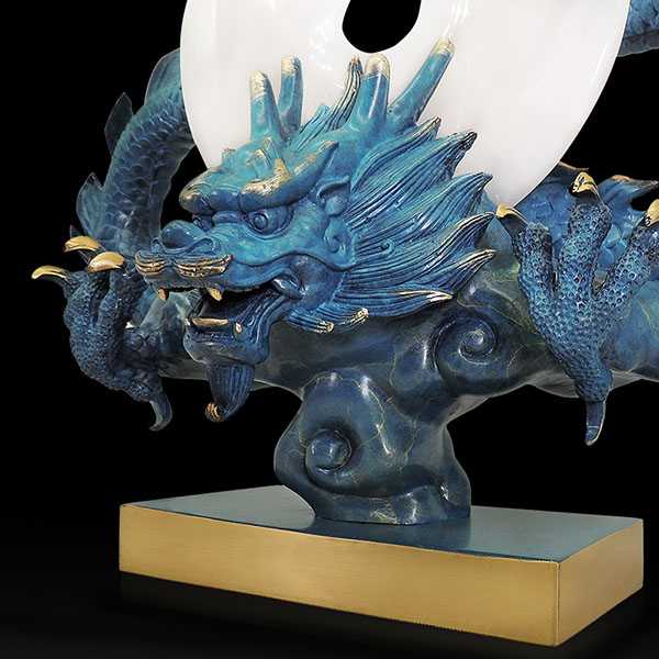 此全铜祥龙平安扣摆件选用62国标新铜,纯手工精制而成,设计精美,神态生动,细节考究,色泽鲜艳,线条流畅,纹理细腻,精雕细琢,高温烧色不褪色,手感润泽而有层次感。其造型为祥龙环绕玉璧,腾云驾雾,身姿威武霸气,寓意青云直上、瑞祥如意、富贵延绵,具有祈福纳吉和辟邪开运的风水理气功效。