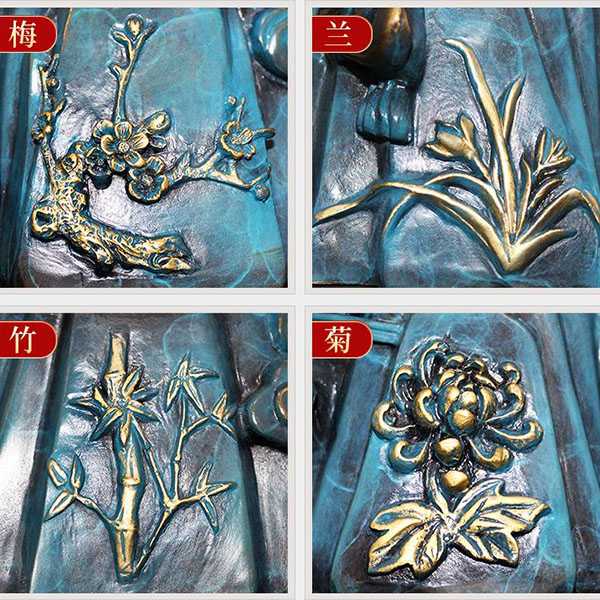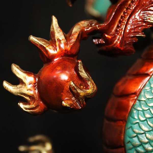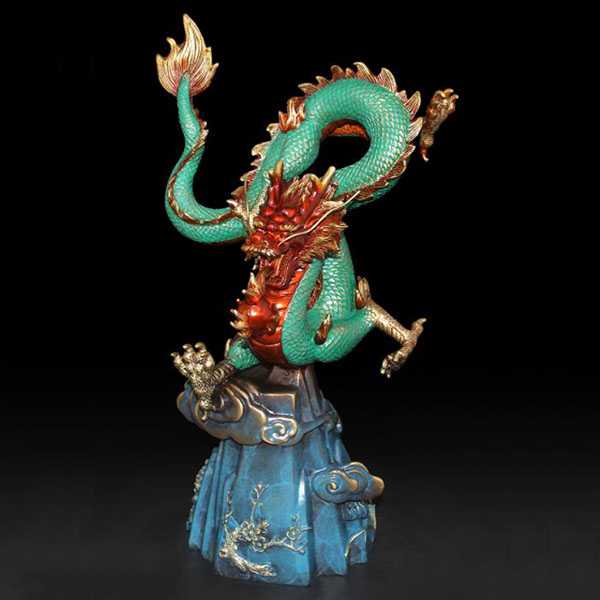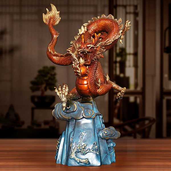 此全铜祥龙献瑞摆件选用62国标新铜,纯手工精制而成,设计精美,神态生动,细节考究,色泽鲜艳,线条流畅,纹理细腻,精雕细琢,高温烧色不褪色,手感润泽而有层次感。其造型为祥龙腾云驾雾,身姿威武霸气,底座饰以梅兰竹菊四君子纹饰,寓意瑞祥如意、富贵延绵,具有祈福纳吉和辟邪开运的风水理气功效。
