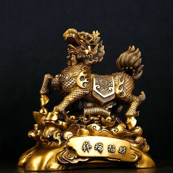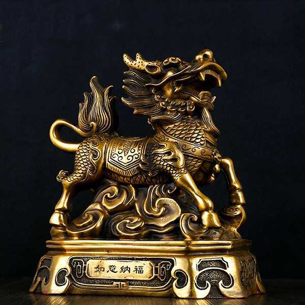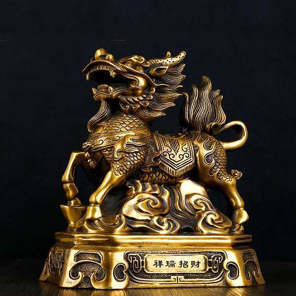 麒麟是古代传说中的一种神兽,龙首鹿身,头上有角,身有鳞甲,尾像牛尾。古人认为,麒麟出没处,必有祥瑞,故也被视为代表仁义、吉祥、太平和长寿的瑞兽。《宋书》云:“麒麟者,仁兽也。牡曰麒,牝曰麟”。麒麟因其深厚的文化内涵,常被制成各种饰物和摆件,其形象神态庄重,威而不猛,泰而不骄,贵而不俗,灵而不钝,蕴含着自强不息、厚德载福,向往盛世、平和可亲的精神,体现大中华风范。
