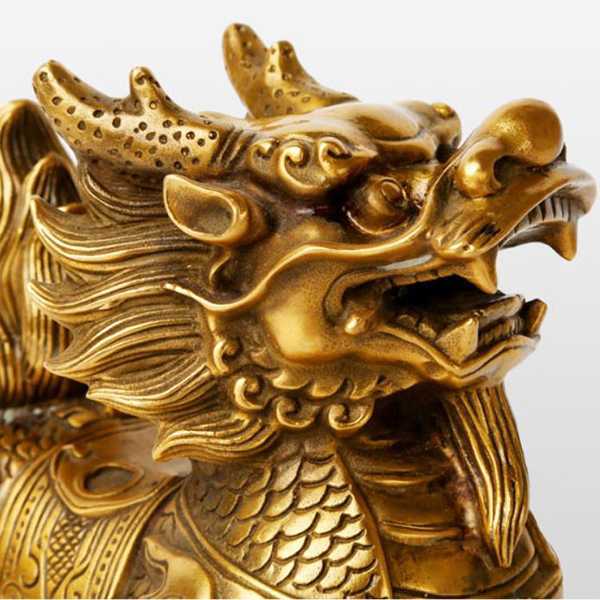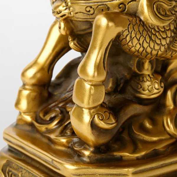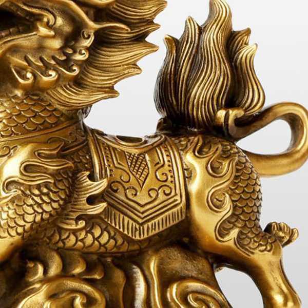 此全铜祥瑞如意麒麟摆件选用62国标新铜,纯手工精制而成,设计精美,细节考究,神态生动,精雕细琢,手感润泽而有层次感。其造型为麒麟昂首阔步,寓意催财升官、招财送子、祥瑞平安和富贵长寿,具有辟邪化煞和镇宅开运的风水理气功效。