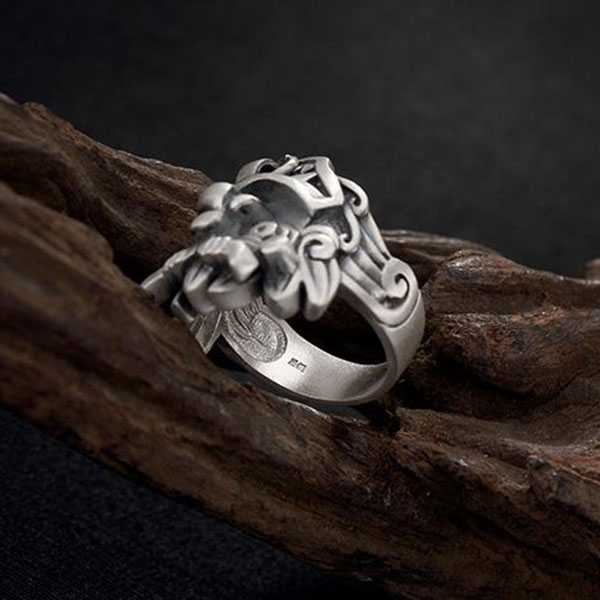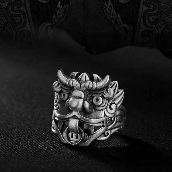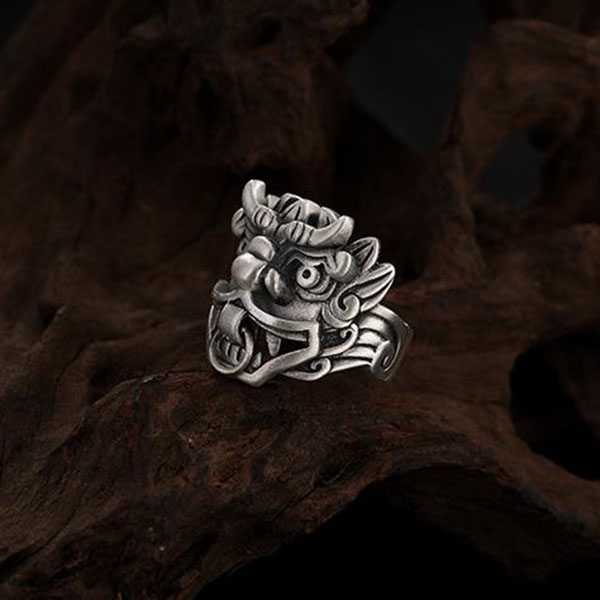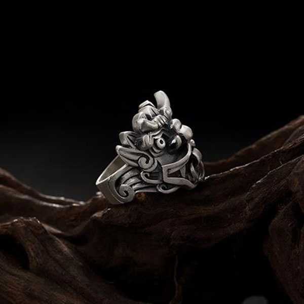 此饕餮银戒指选用S990足银,纯手工精制而成,设计古朴,手感细腻,戒面雕刻上古神兽饕餮图案,具有招财、辟邪的寓意。