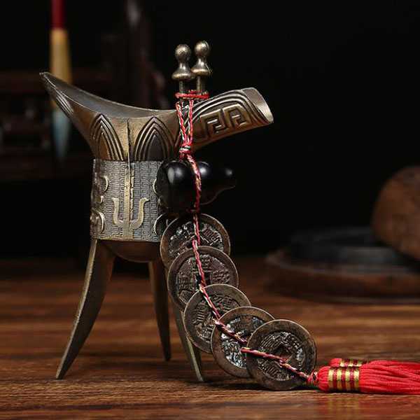 五帝,原始意义上是指东、南、西、北、中五方天帝,为五方神。古代铜钱本身的铸造就包涵了天、地、神合一的寓意,五帝钱,指五枚圆形方孔的铜钱币,象天法地,集五方五行之气。古代民间,一直有用古铜钱驱邪招福的习俗,通常将五枚铜钱串在一起,代表着五行力量,可抵御邪祟。五帝钱其中蕴含着我国古代天圆地方的宇宙观和哲学思想,是古代阴阳五行八卦学说的具体体现,具有挡煞、防小人、避邪、旺财、祈福的风水涵义。