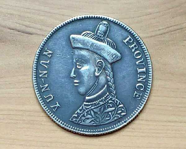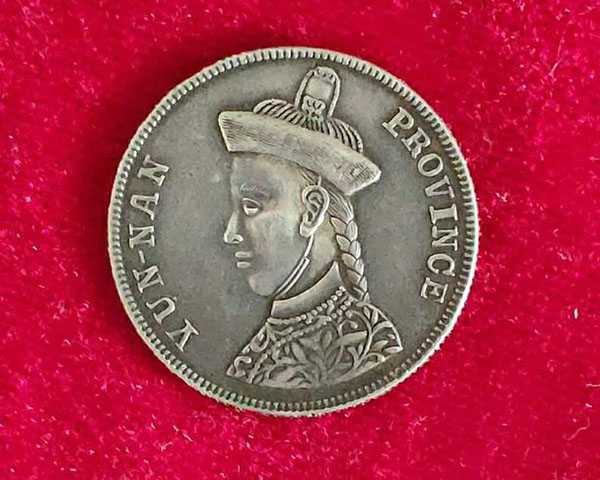 此云南卢比于光绪三十三年(1907年)为抵制英属印度卢比试铸,形制仿印度卢比,铸有光绪帝像及英文“云南银币”字样。铸造之后未正式发行流通,因此存世极罕见,现市面已知流通数量不足5枚。 在北京诚轩2014年春拍卖会古钱金银锭机制币专场中,一枚近未流通的云南卢比,最终以598000元成交,其中价值可见一斑。